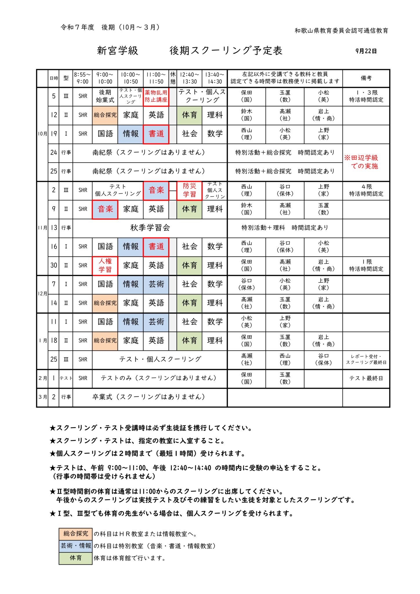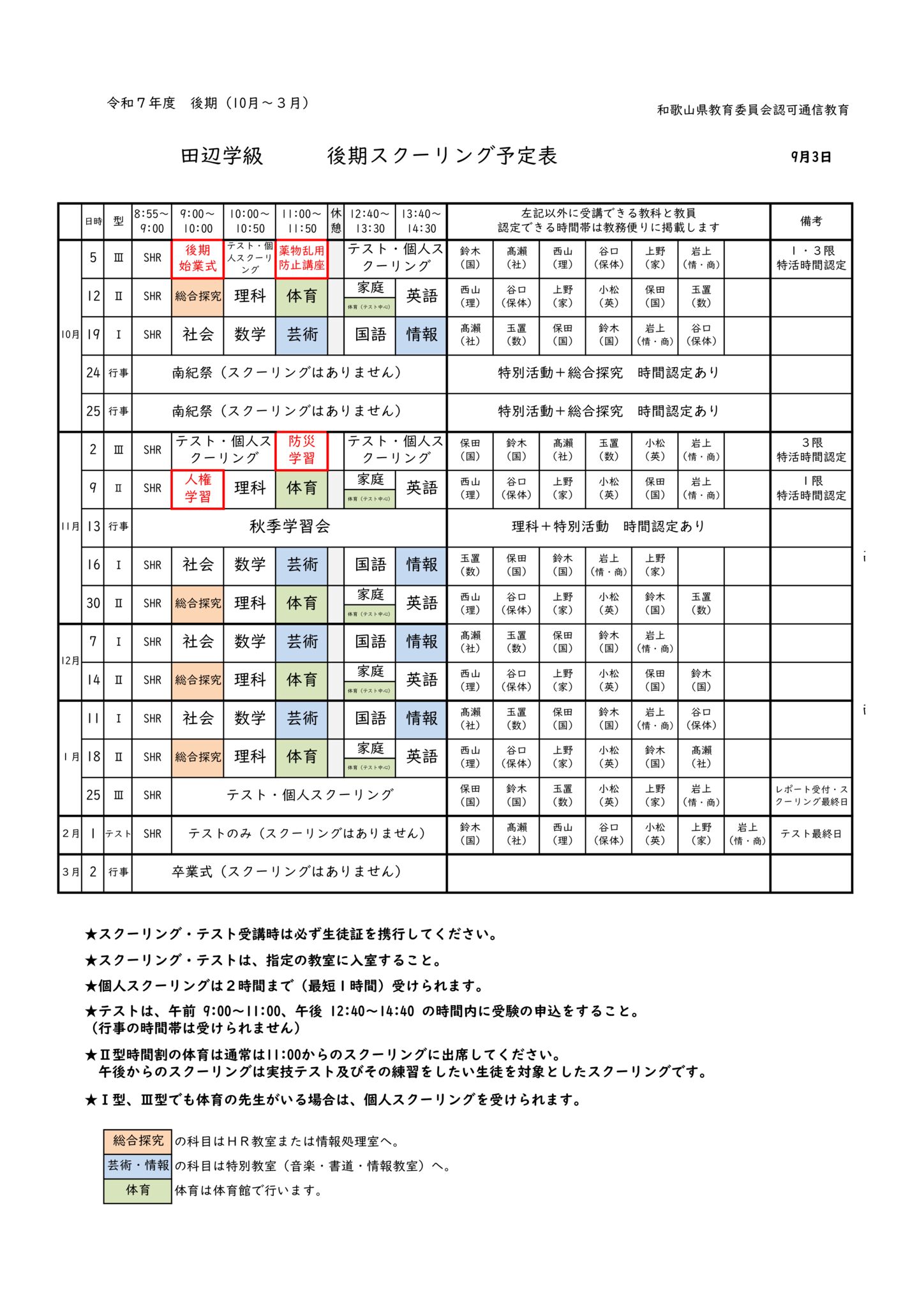 令和7年度 入学生用教育課程表 令和7年度教育課程表(令和7年度入学生用) 令和6年度 入学生用教育課程表 令